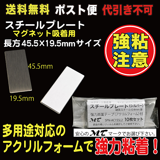 スチールプレート 45.5×19.5mm(マグネット吸着用)シルバー ポスト便 送料無料 10枚入 AC15M