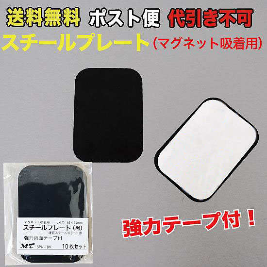 スチールプレート 65×45mm 黒(マグネット吸着用) シール付 ポスト便 送料無料 10枚入 (SPN-1BK2_M)