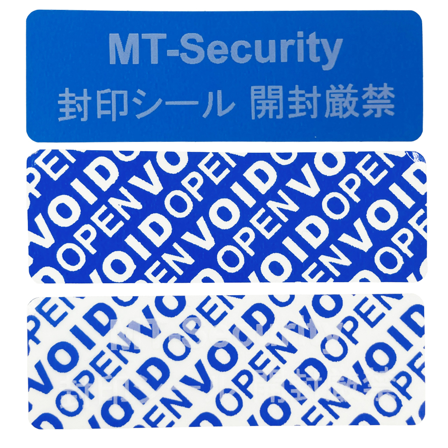 封印シール・不正開封防止シール・改ざん防止用セキュリティラベル「MT-Security・封印シール+開封厳禁」印刷:白1色 転写・青(100枚入)MT-F2060BW(TT)