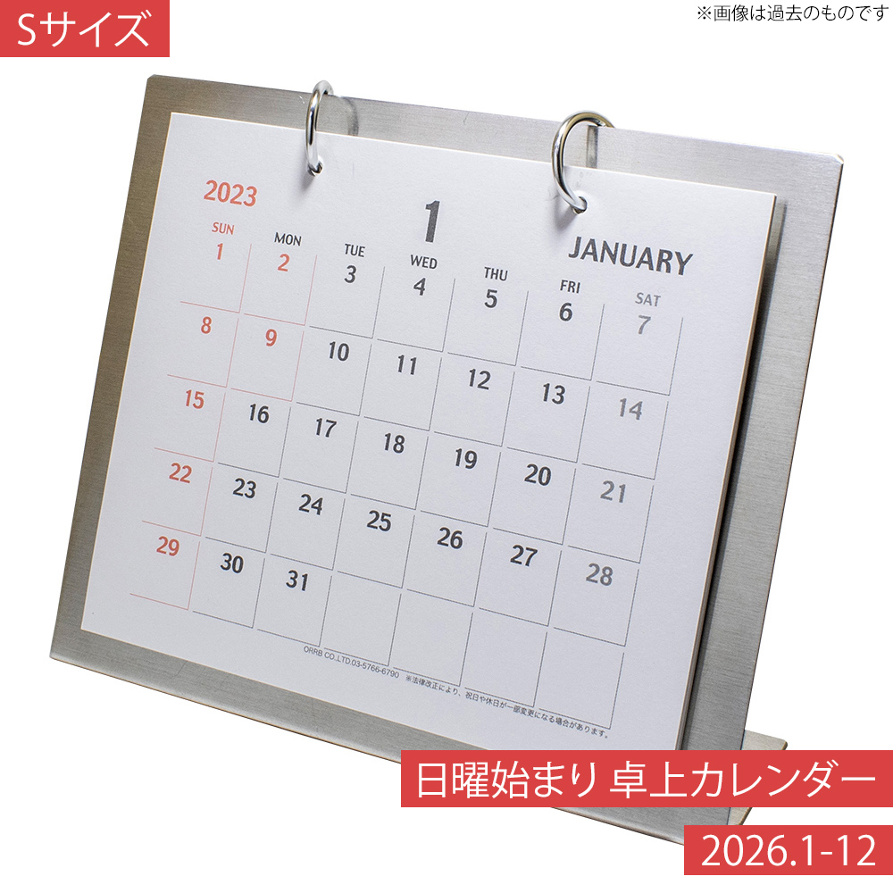 2026 カレンダー 日曜始まり スチールベース 卓上カレンダー Sサイズ