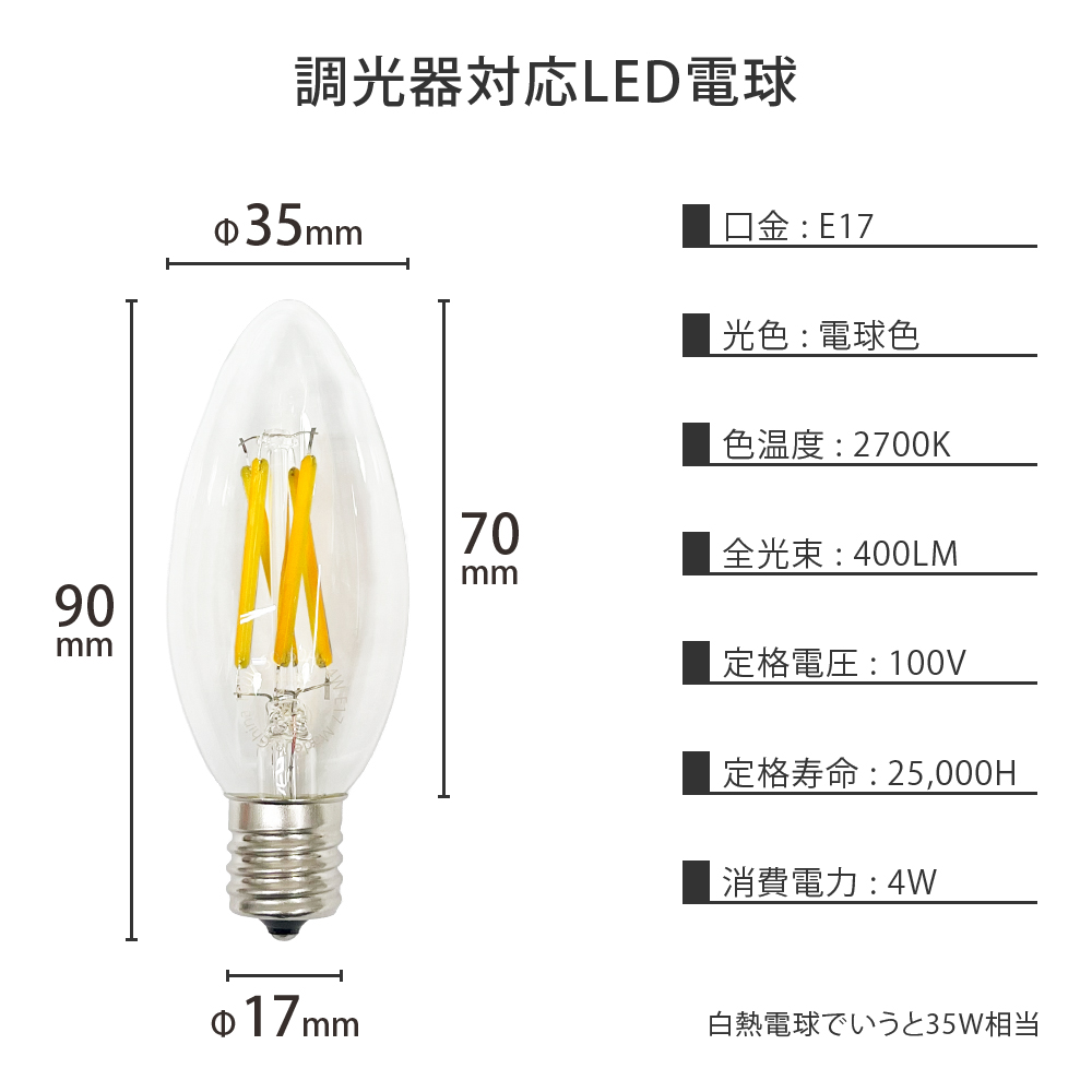 LED電球 電球 E-17 調光タイプ シャンデリア型 キャンドル型 爆買