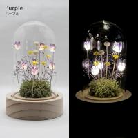 LEDライトで光るお花を中心に、プリザーブドフラワーやドライフラワーで装飾したフラワードーム。