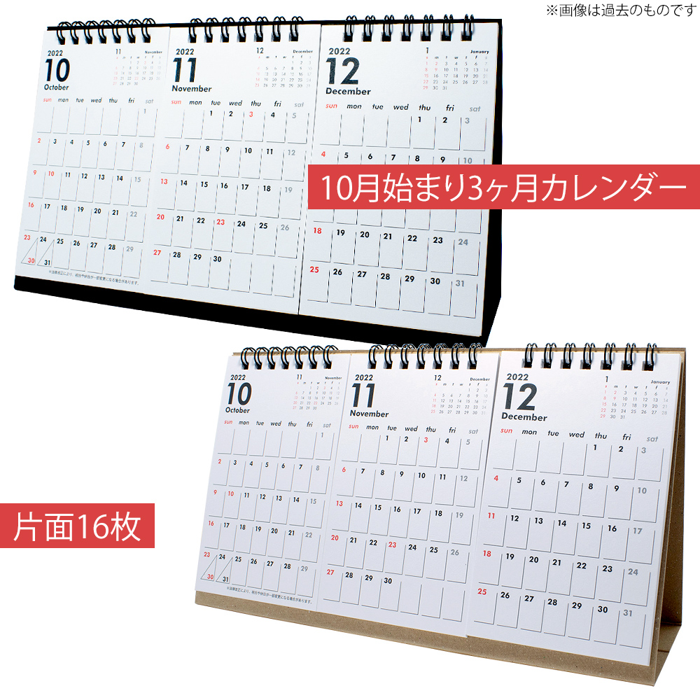<10月始まり>日曜始まり3ヶ月卓上カレンダー