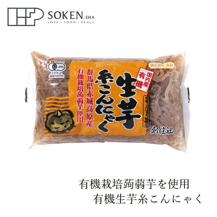 | 蒟蒻芋の産地だけでなく、仕込み水にもこだわった、有機JAS認証品の糸こんにゃくです。アク抜き済みで、すぐ使えるのも嬉しいですね。 |