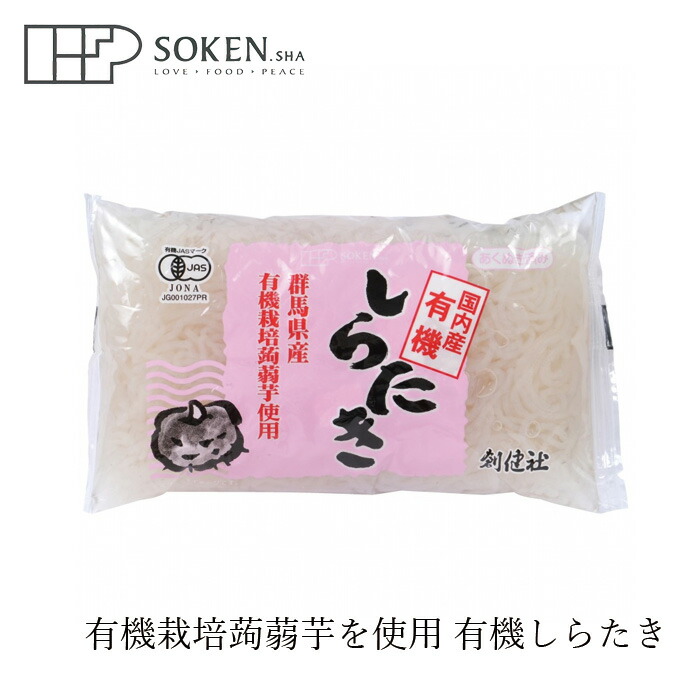 | 蒟蒻芋の産地だけでなく、仕込み水にもこだわった、有機JAS認証品のしらたきです。アク抜き済みですので、サッと炒め物などにも。 |