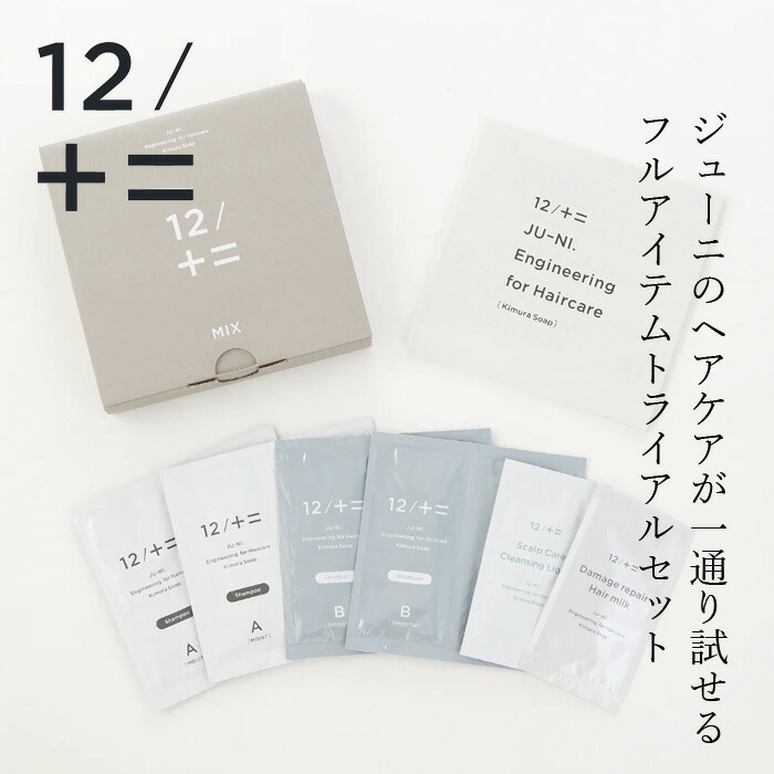 | 木村石鹸が作る、髪の悩みに特化したヘアケア「12/JU-NI」をすべてお試し頂けるセットです。特化したからこそ合う人・合わない人がいますが、合う方は髪の変化を感じていただけるかと思います。これまで「そういう髪質だから仕方ない」と諦めていた方に試していただきたいアイテムです。 |