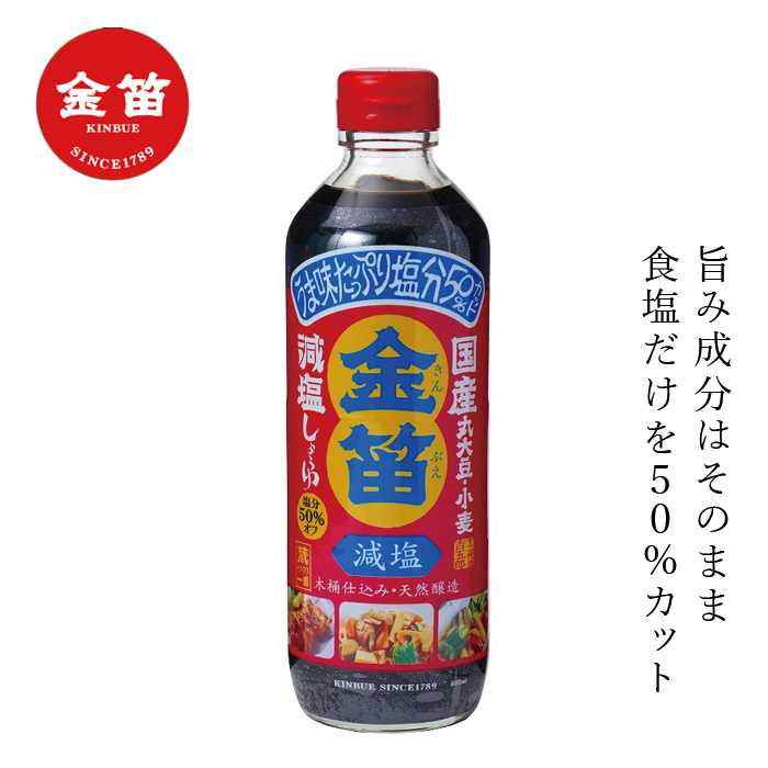 | 調味料、かけ醤油、つけ醤油等様々にお使いください。 【保存方法】 直射日光を避け、常温で保存して下さい。 【 注意事項】 ○食塩分を50%カットしてあるため、開栓後は必ず冷蔵庫で保管して下さい。 ○ビンはワレモノです。お取扱いには十分ご注意下さい。 ○普通のこいくちしょうゆ(食塩分17.5%)に比べて食塩分を50%カット |