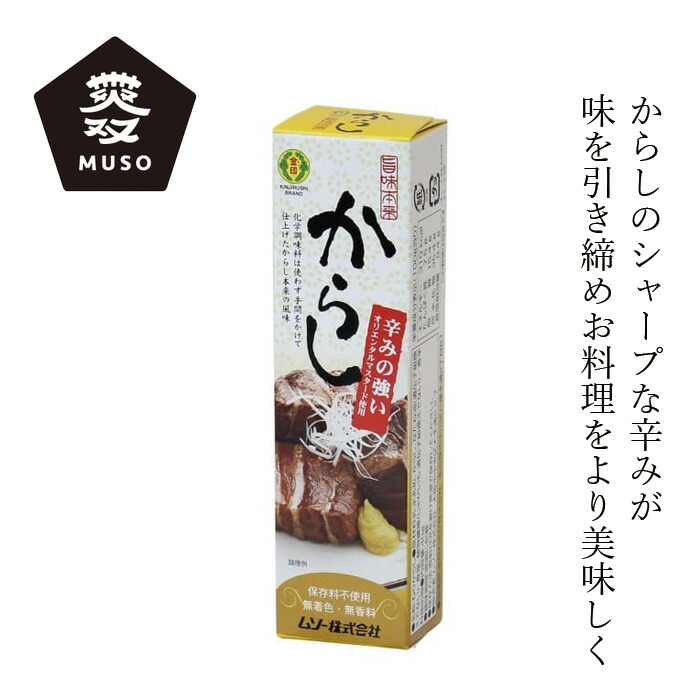 | 着色料、保存料、香料、化学調味料不使用。からし本来の風味にこだわった、しっかり辛いからしです。 |