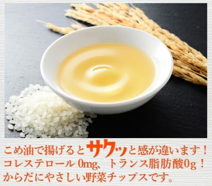 1袋食べてしまっても、原材料は野菜+こめ油または、野菜+こめ油+塩だけなので、罪悪感ゼロ!栄養も摂れて、ヘルシーなおやつです。