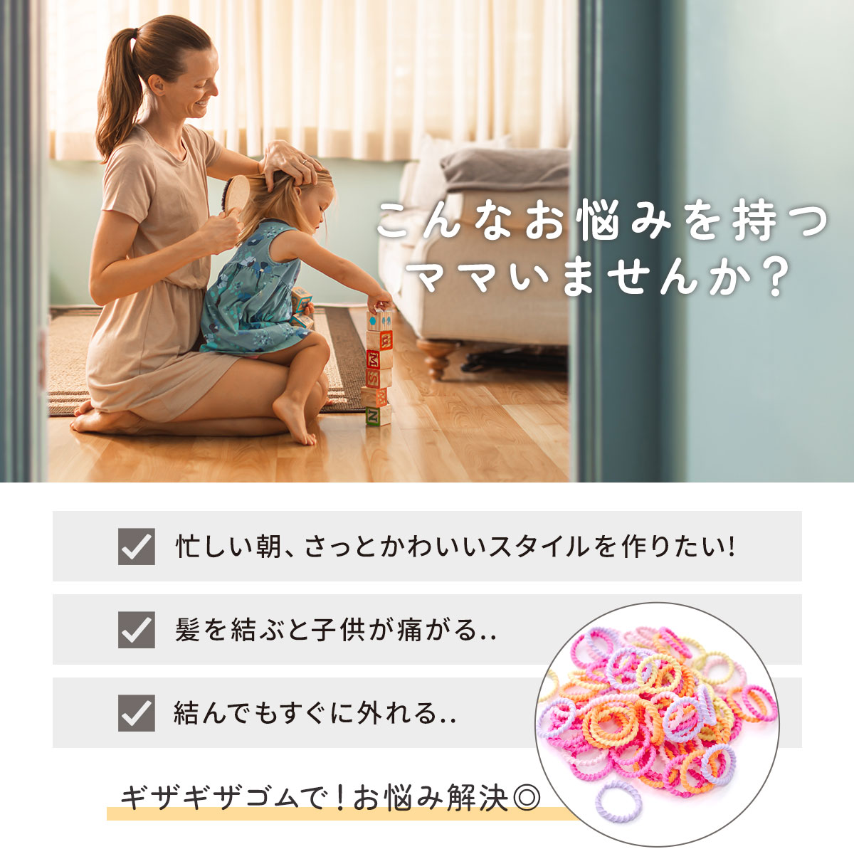 髪を結ぶと子供が痛がる..