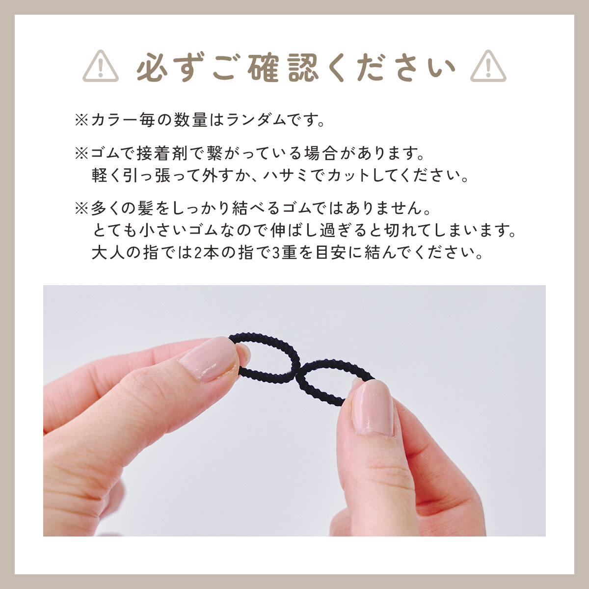 ・とても小さいゴムなので伸ばし過ぎると切れてしまいます
