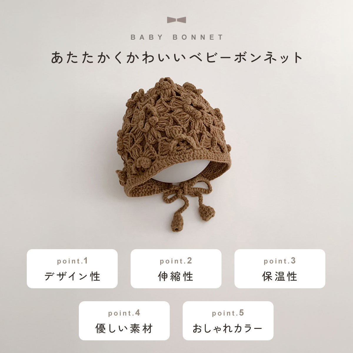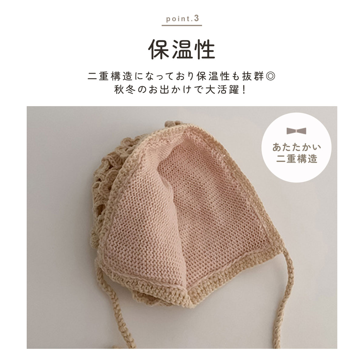 あたたかさと可愛さを兼ね備えたベビーボンネット◎