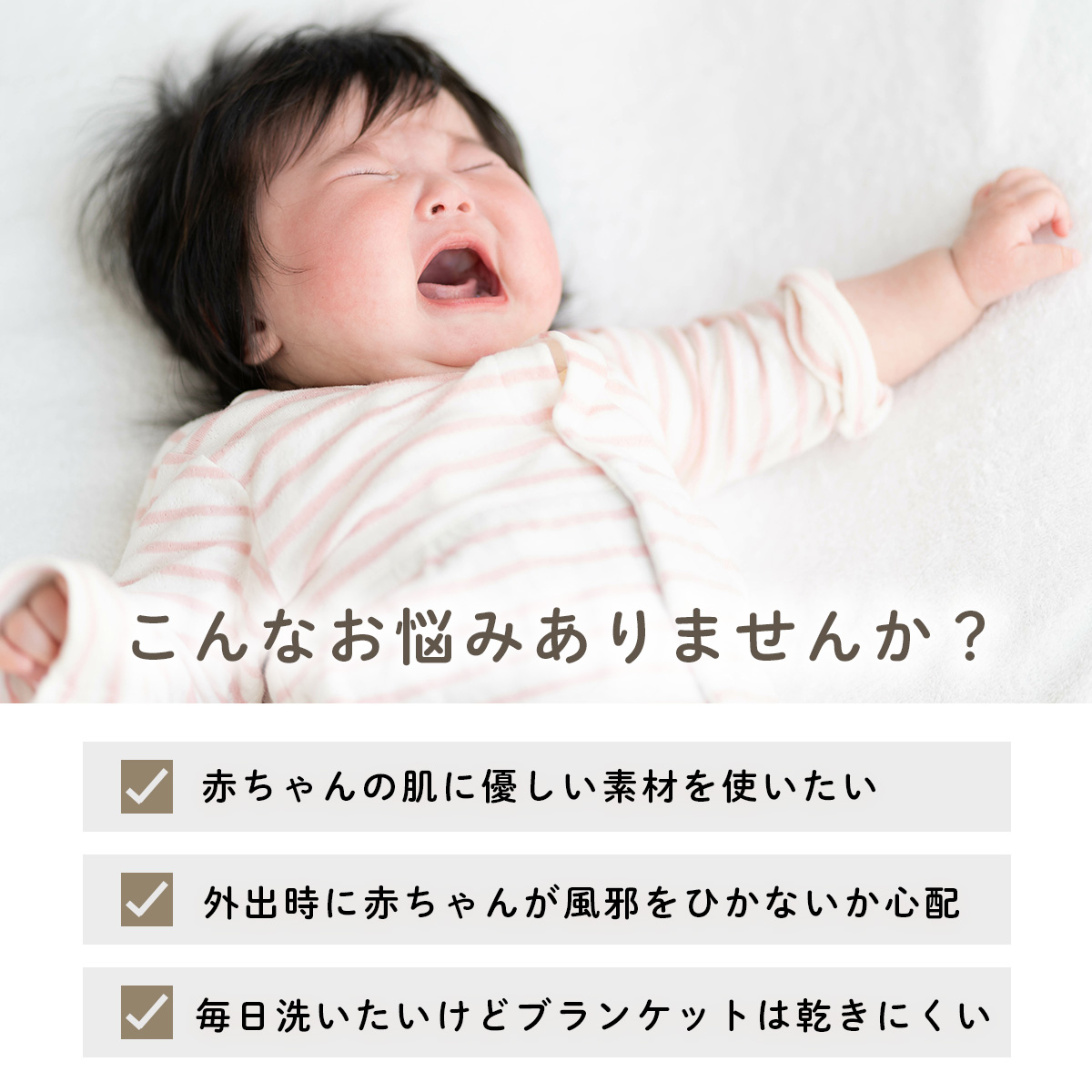 赤ちゃんの肌に優しい素材を使いたい