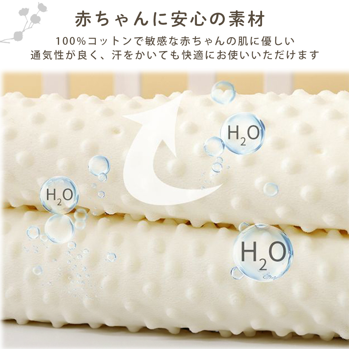 100%コットンで敏感な赤ちゃんの肌に優しい
