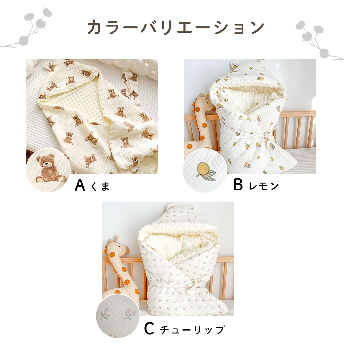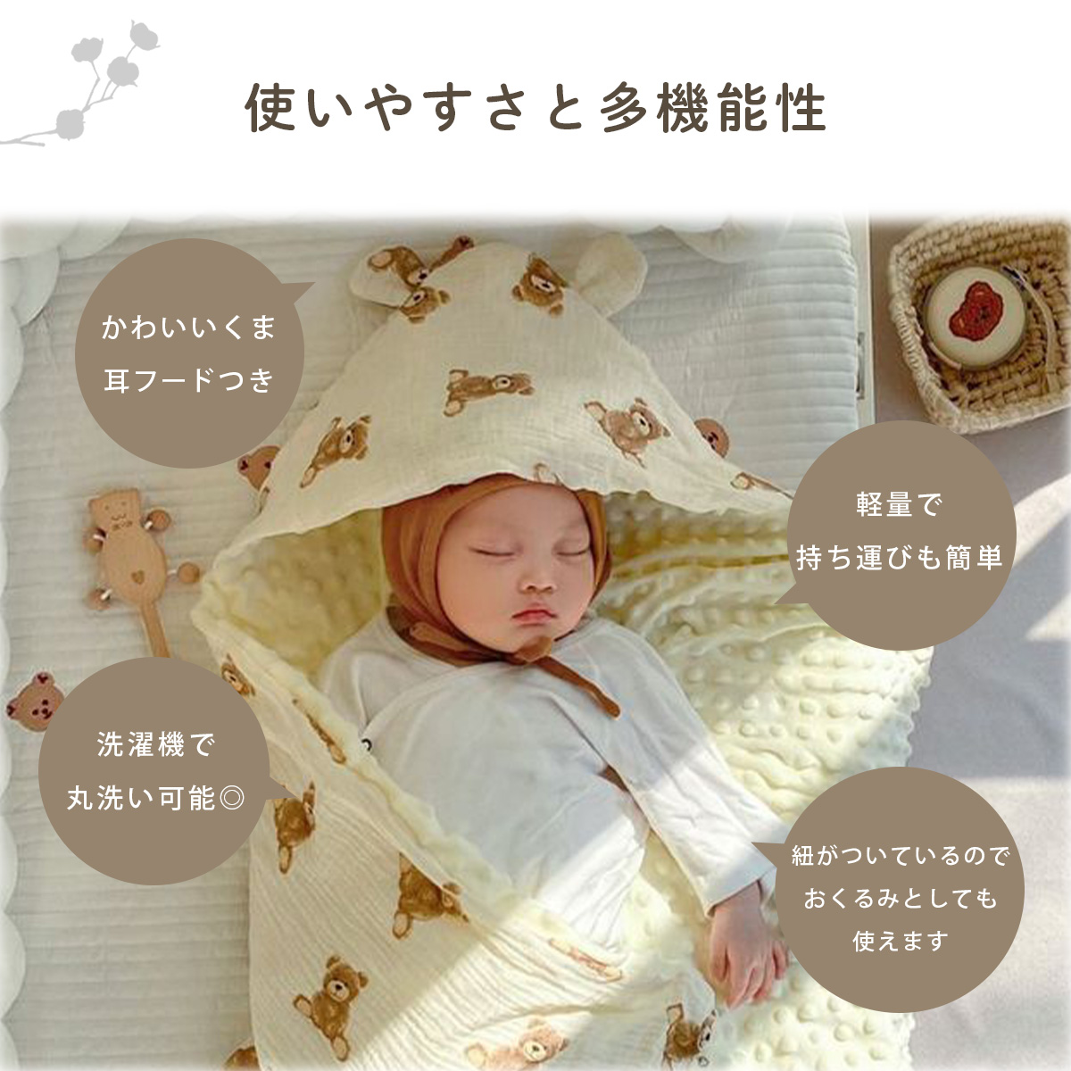 紐がついているのでおくるみとしても使えます