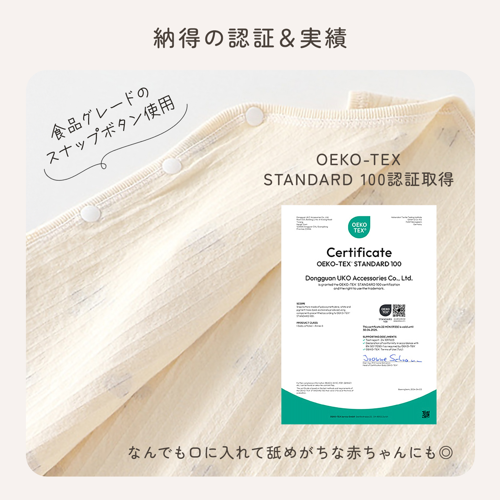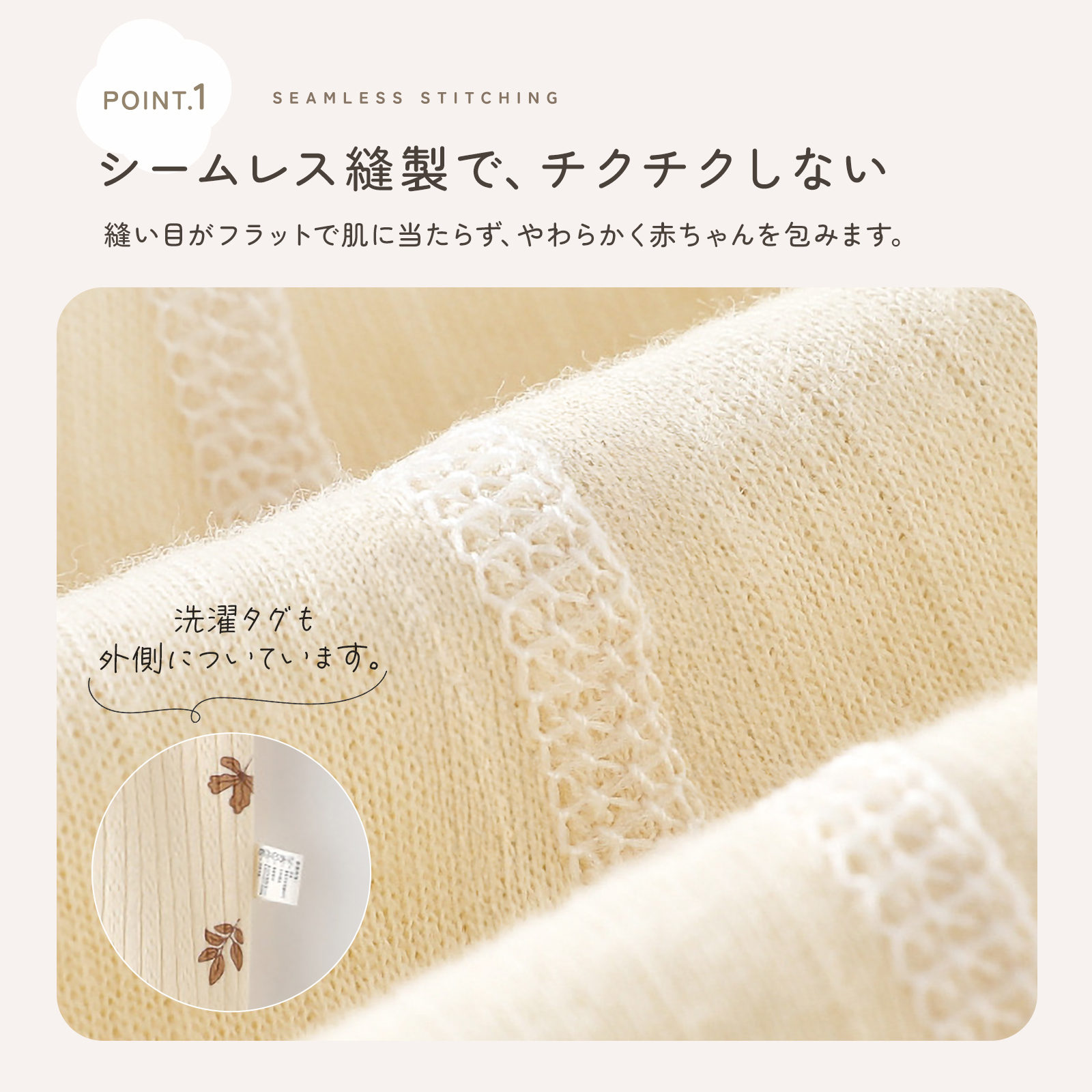 縫い目がフラットで肌に当たらず、やわらかく赤ちゃんを包みます。