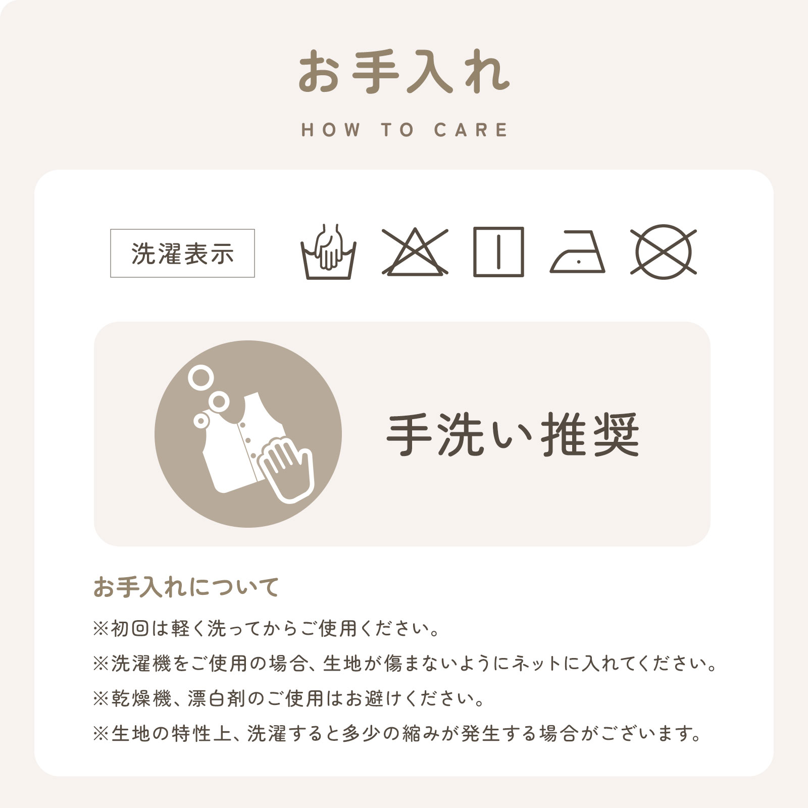 ・生地の特性上、洗濯すると多少の縮みが発生する場合がございます。