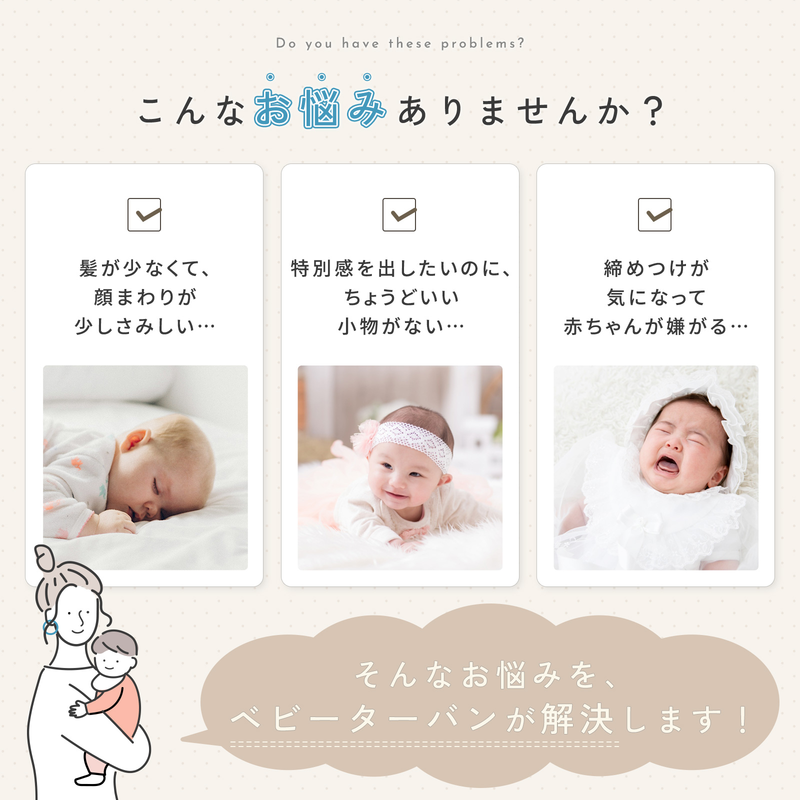そんなお悩みを、ベビーターバンが解決します!