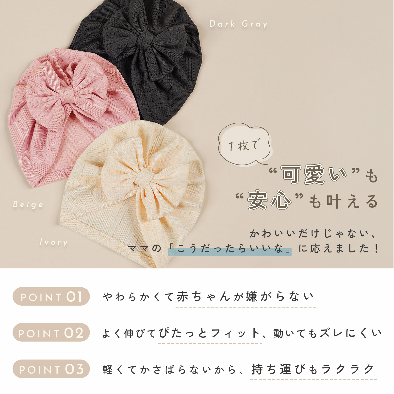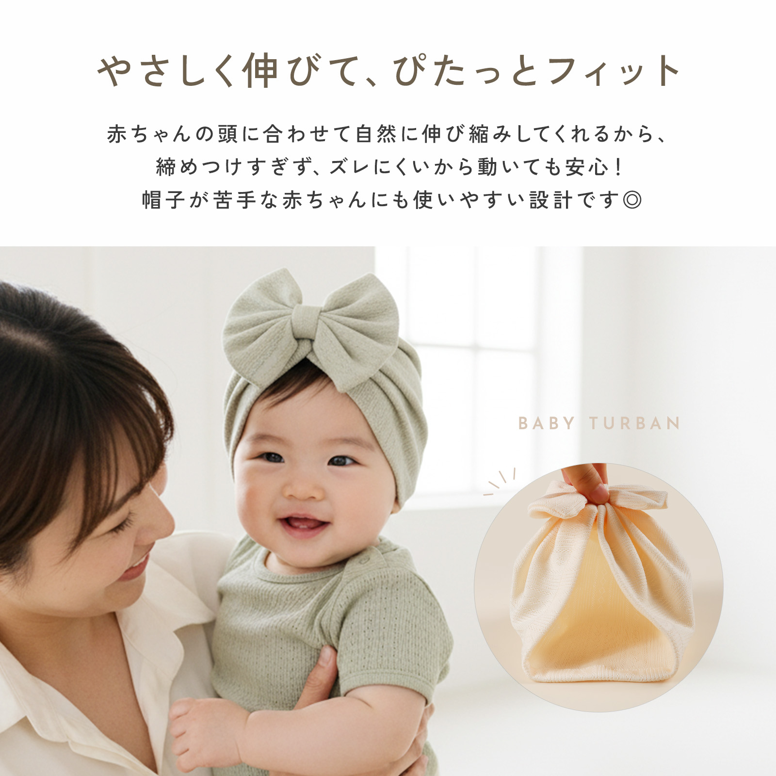 帽子が苦手な赤ちゃんにも使いやすい設計です◎