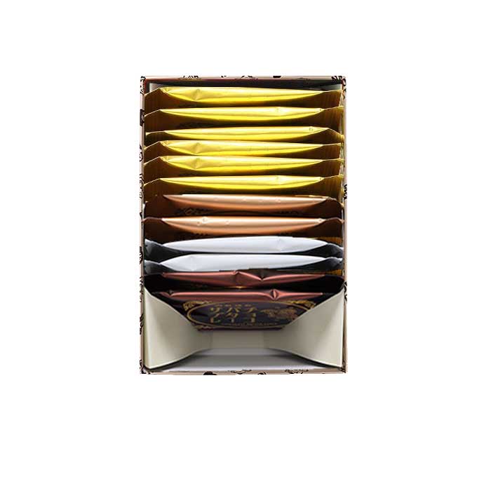 こがしバターサブレ、マカダミアバターサブレ、チョコバターサブレ、ココナッツバターサブレが入った4種類の詰合せ。