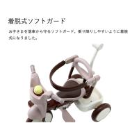 お子さまを落車から守るソフトガードが付いており、乗り降りしやすい着脱式です。