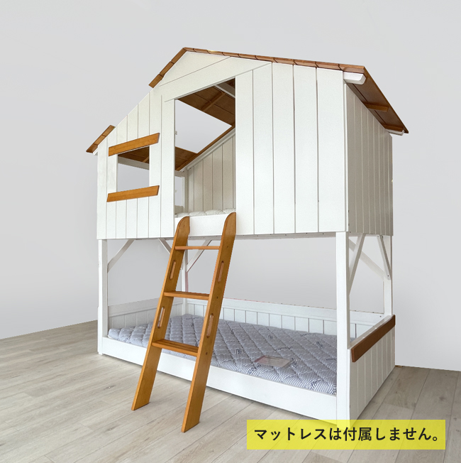 【福井県配送限定】【アウトレット特価! 187,000円→139,800円】2段ベッド ベッドフレーム 屋根付 家 ホワイト 白 キッズ 子供 木製 OUTLET 処分品 中古