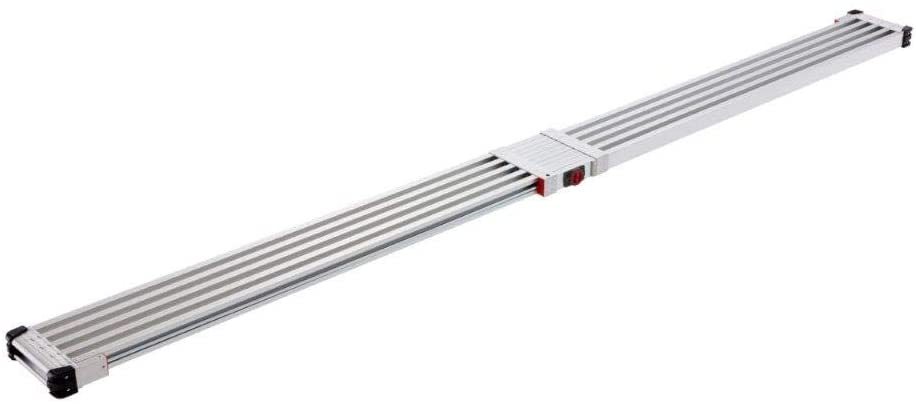 無段階調整フリーストッパーによりスムーズに伸縮できます、板面は水や異物が溜まりにくいスノコ状の足場板。(両面使用可)