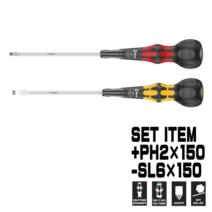 WERA ボールグリップ レーザーチップ プラス マイナスドライバー セット PH2x150mm + SL6x150mm 日本限定仕様 ボールグリップドライバー ヴェラ