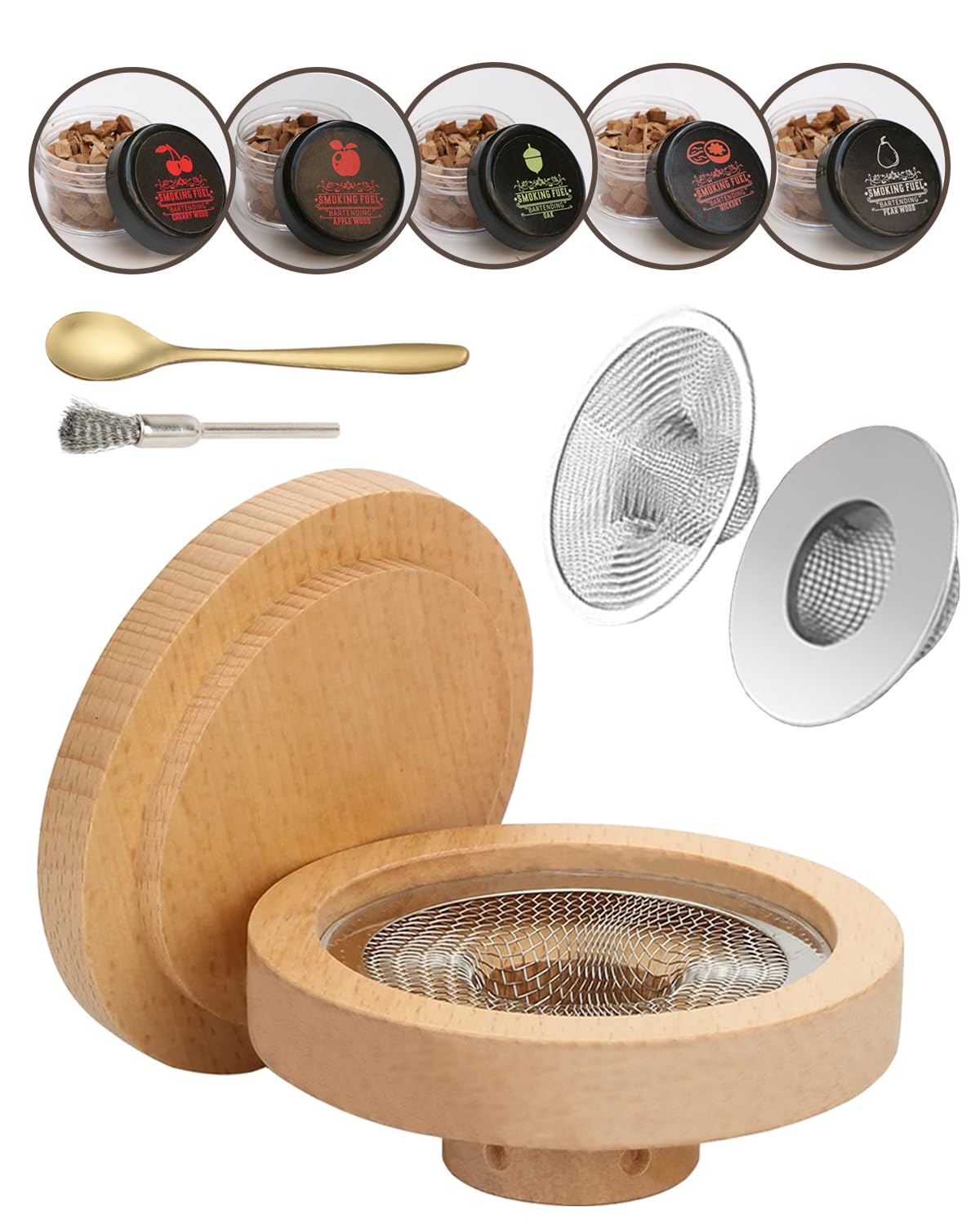 - 【完璧なギフト】 カクテルスモークセットには、スモーキーカクテルウッドリッド1個、スプーン1個、5種類の木製チップ、ウイスキーの煙を掃除するための小さなブラシとフィルターが含まれています。高級感のあるユニークなスモーカーは、お酒好きの方のプレゼントとしても喜ばれること間違いなしのアイテムです。 お父さん、兄弟、友人への素晴らしい贈り物。 遠い日のギフトに最適。