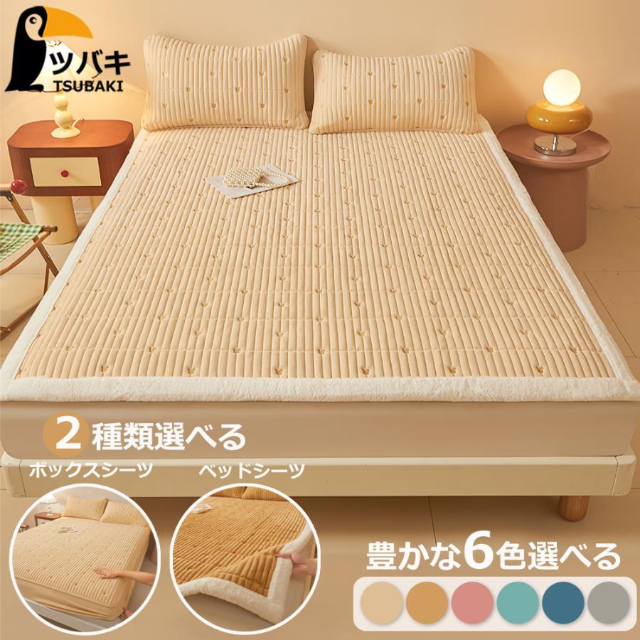 刺繍ベッドシーツ 厚手保温 冬 中綿填充 ボックスシーツ 枕カバーセット シングル セミダブル ベッドカバーシーツ マットレスカバー パイル ふわふわ 洗える