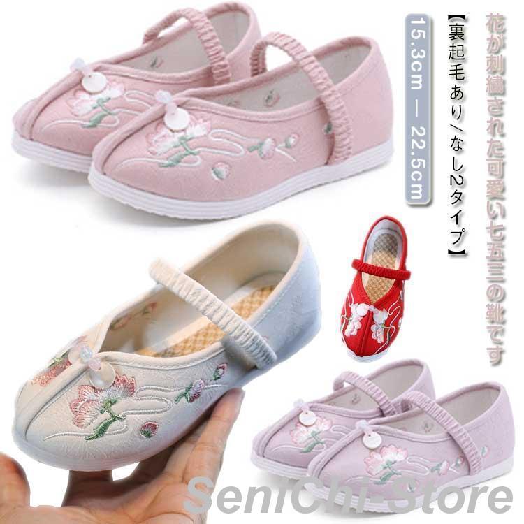 裏起毛あり/なし2タイプ 七五三 靴 女の子 痛くない 草履 キッズ チャイナシューズ 花 刺繍 パンプス チャイナ靴 唐装 漢服 バレエ靴 子供靴