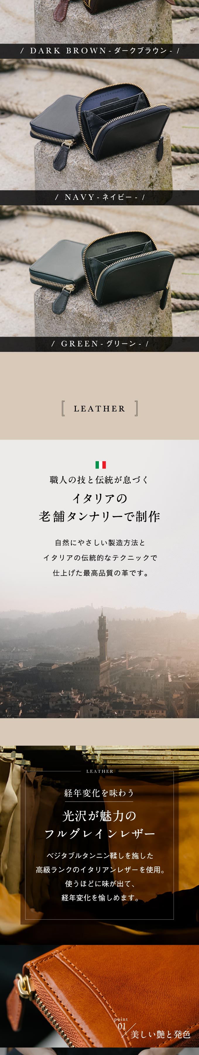 イタリア製の本革を生かした、高級感のあるシンプルなデザインです。