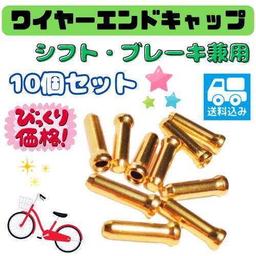 076H29 自転車 ワイヤーエンドキャップ シフト ブレーキ 金 ゴールド