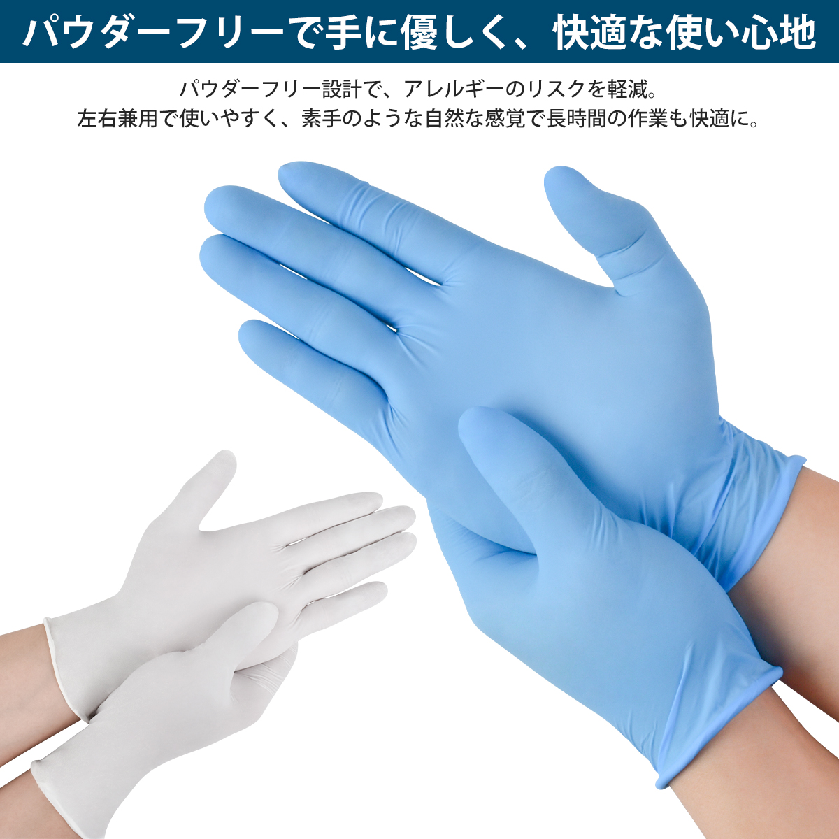 ● パウダーフリー加工により、手にぴったりフィットし、しなやかさと強度を兼ね備え、破れにくいです。
