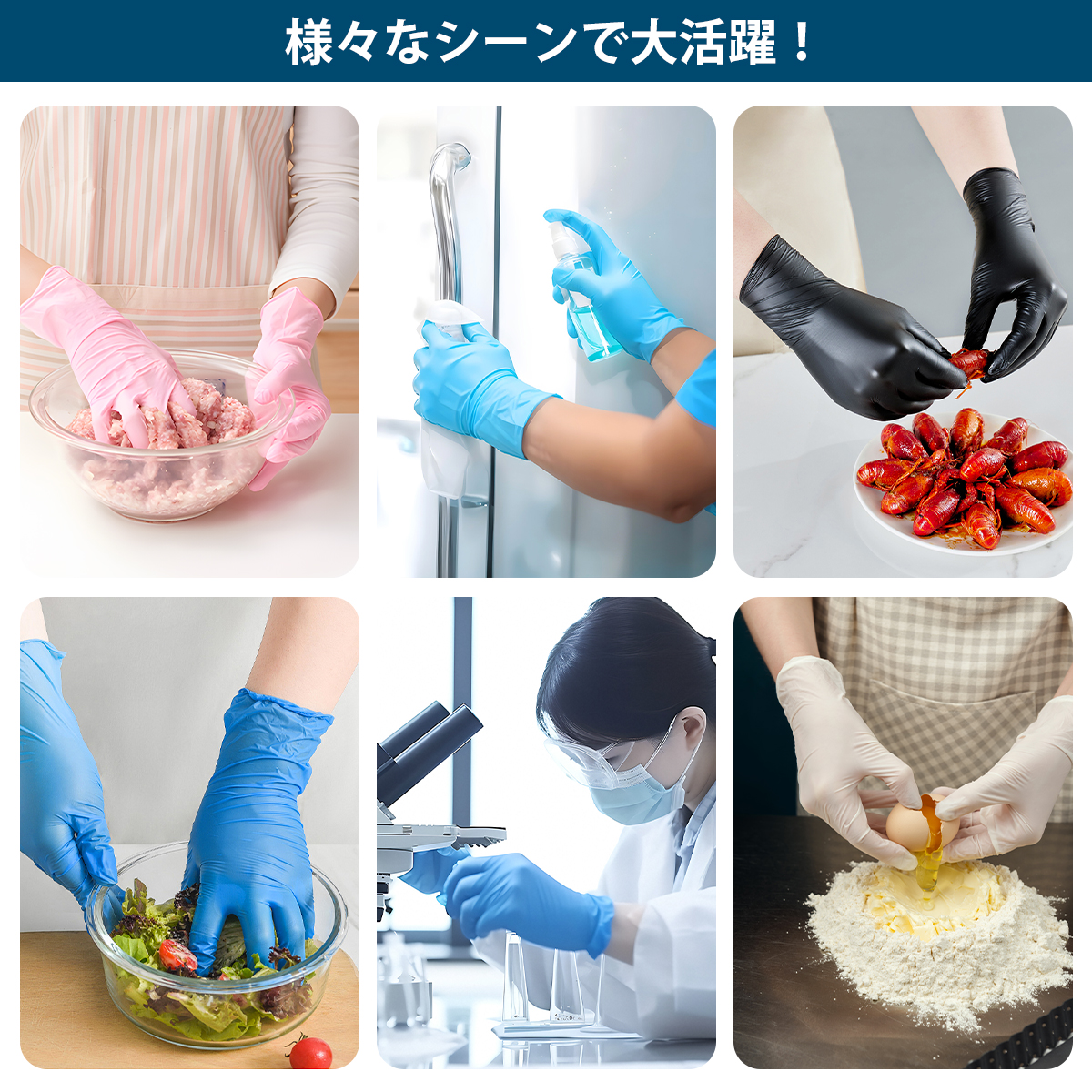 さらに本製品は、食品衛生法にも適合しており、直接食品に触れる作業にも使用可能。調理・盛り付け・食品加工など、細菌対策が重要な場面で信頼できるパートナーとなります。