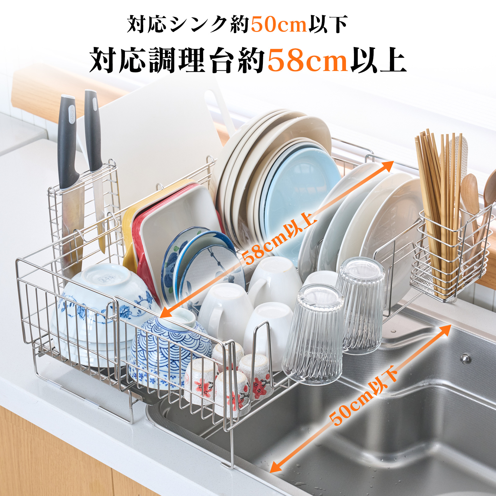 【1年保証】水切りラック シンク上 伸縮 ステンレス 水切りかご スリム 食器 横置き 箸置き 省スペース まな板 大容量