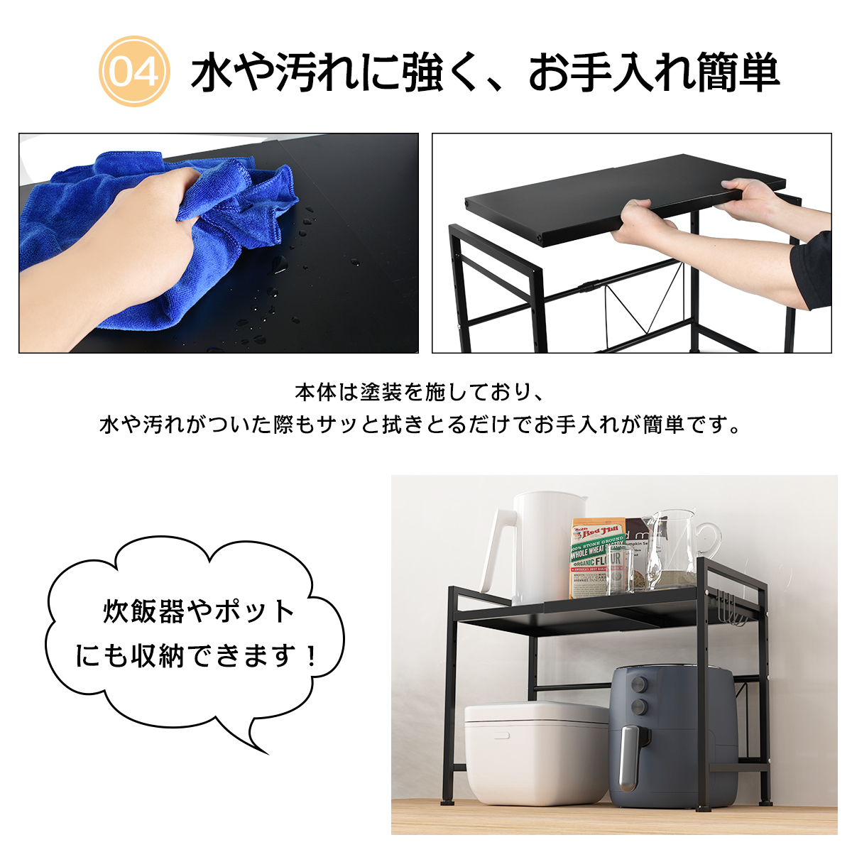 ポイント1 【レンジも置ける伸縮デザイン】