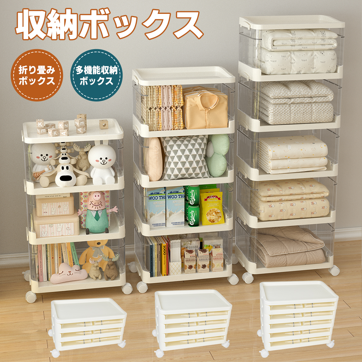 3段、4段、5段のタイプがあり、幅45cmで隙間にぴったり設置できます。折りたたみ式で、工具を使わずに簡単に組み立て可能です。
