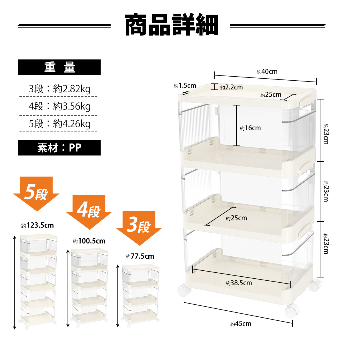 収納ワゴン キッチンワゴン 3段 4段 5段 前開き キャスター付き ベビーワゴン 引き出し 収納棚 小物収納 組立簡単 大容量 敬老