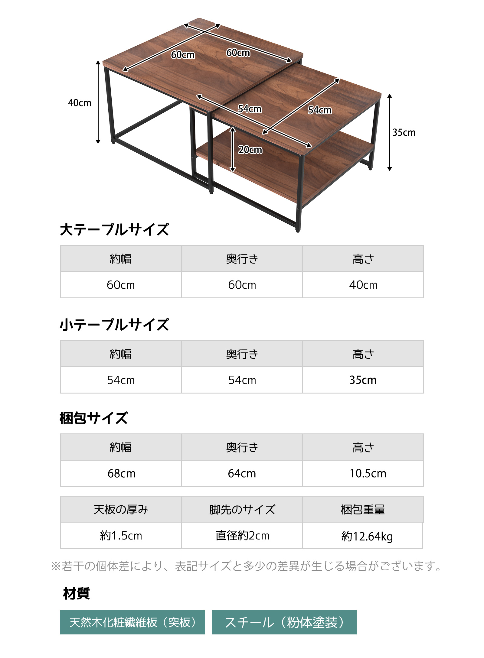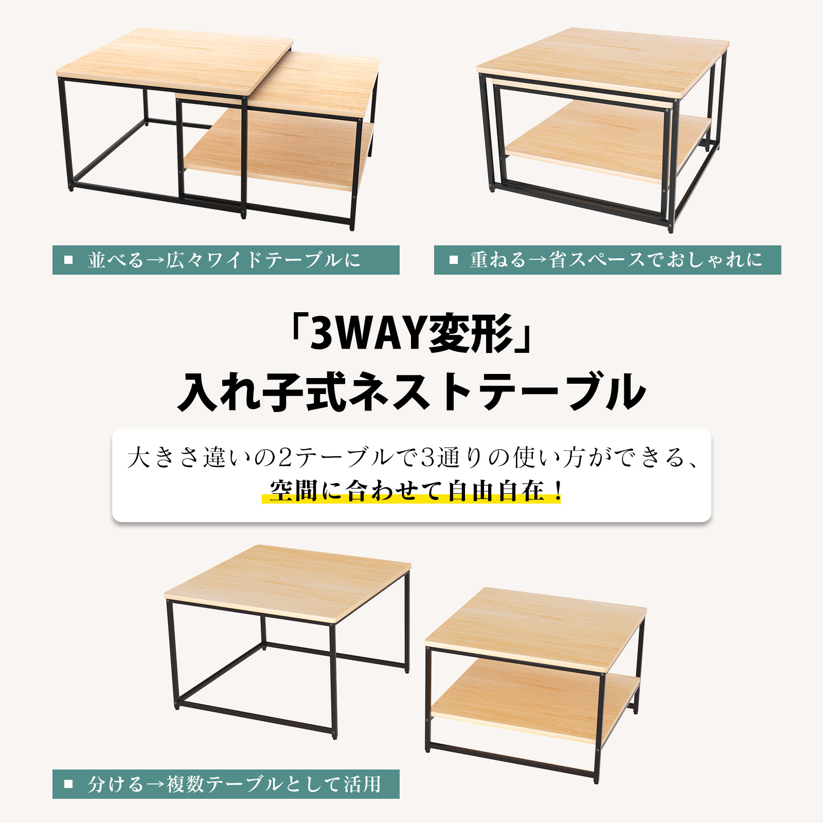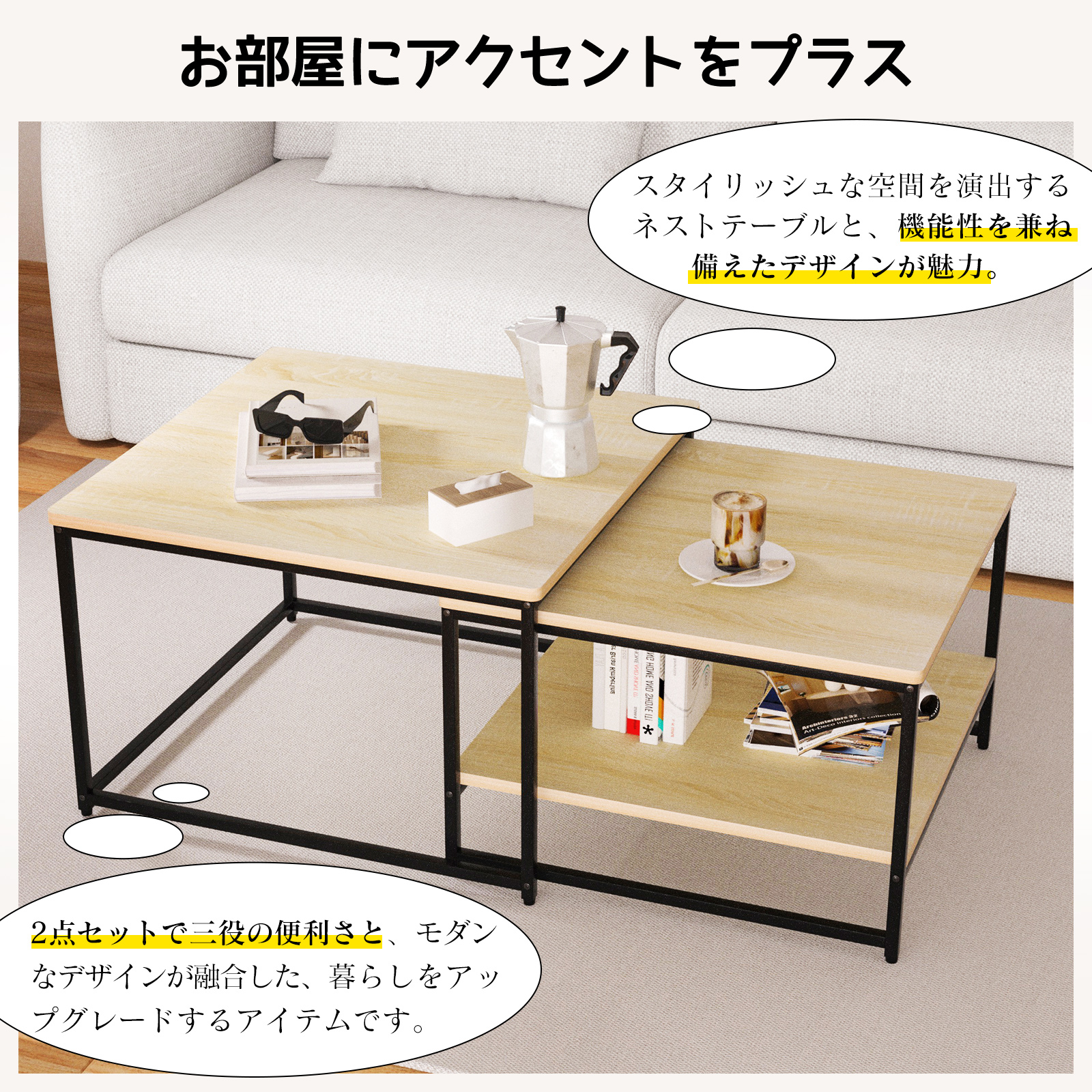 爆買製品名:ネストテーブル 2点セット