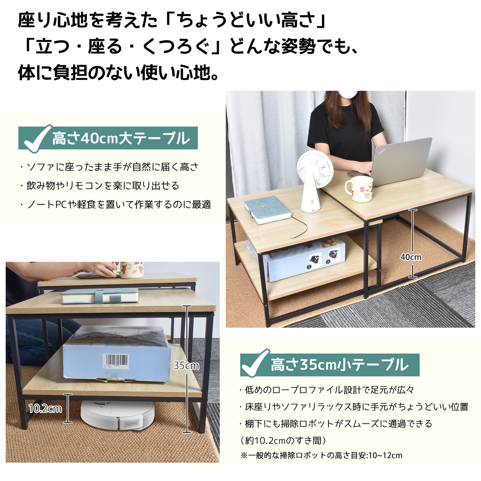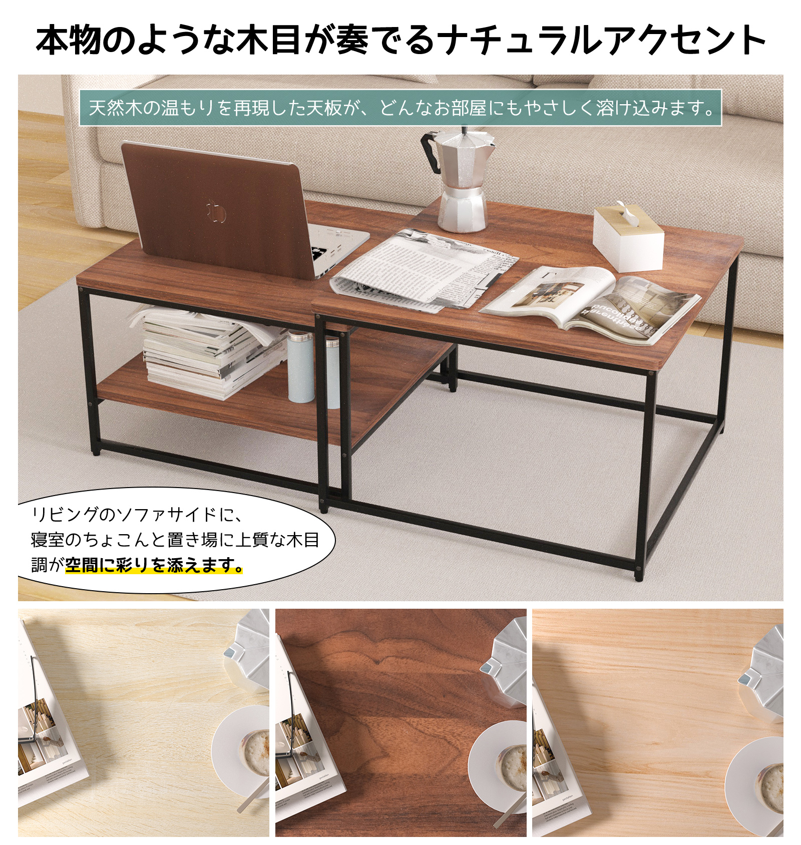ローテーブル 2点セット ネストテーブル センターテーブル 伸縮 おしゃれ リビング コンパクト モダン シンプル ワイド