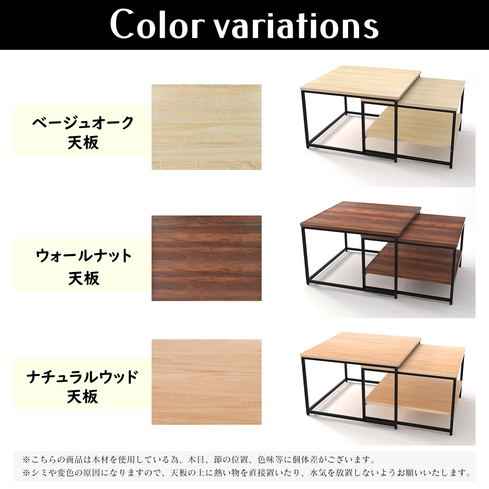天板カラー:ベージュオーク、ウォールナット、ナチュラルウッド