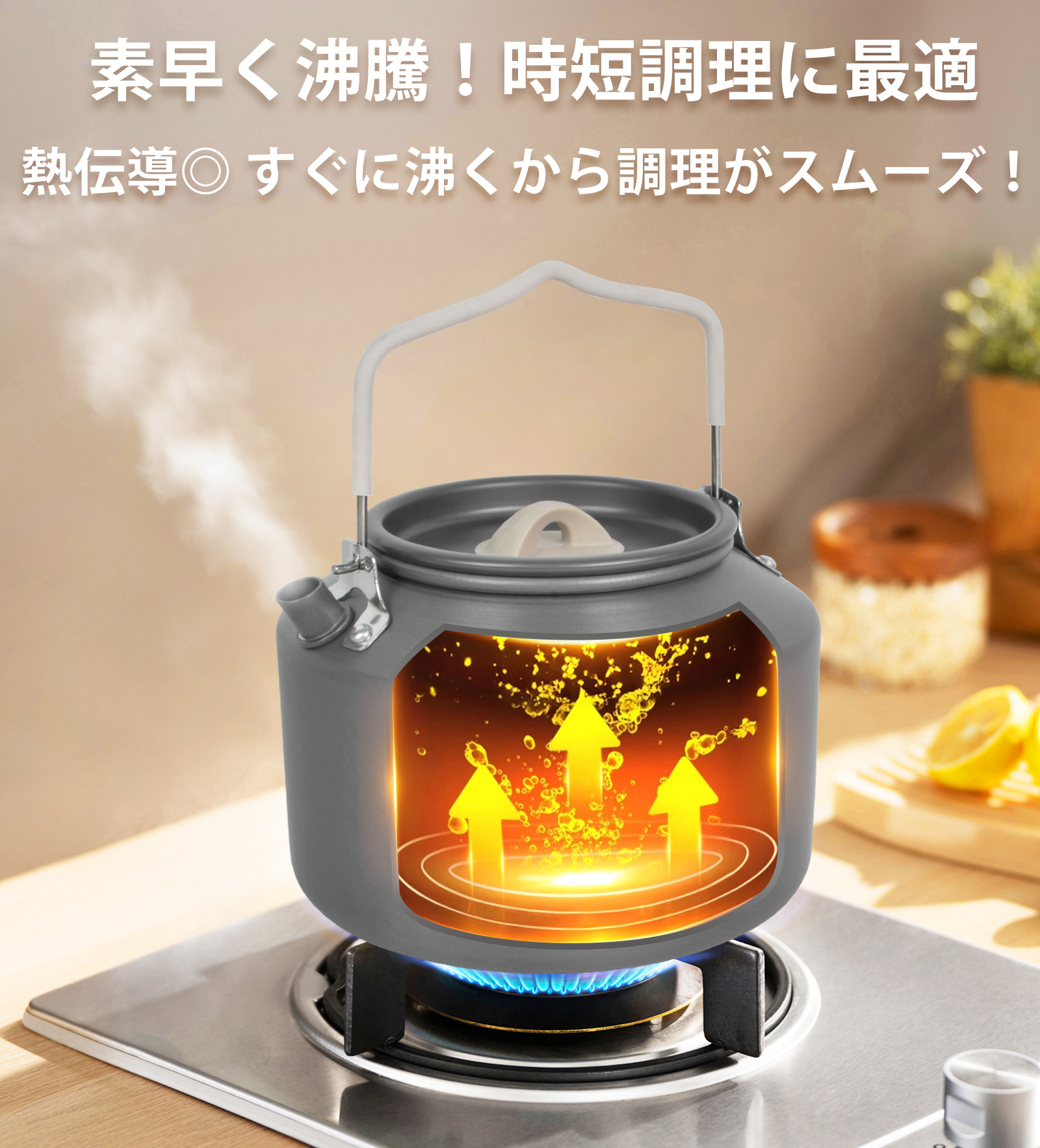 ・火力が均一に伝わり、短時間で湯を沸かすことが可能。