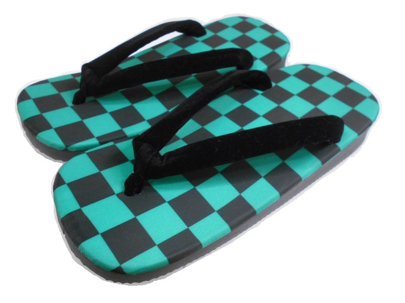 雪下草 雪駄 鬼滅 グリーンX黒 市松柄