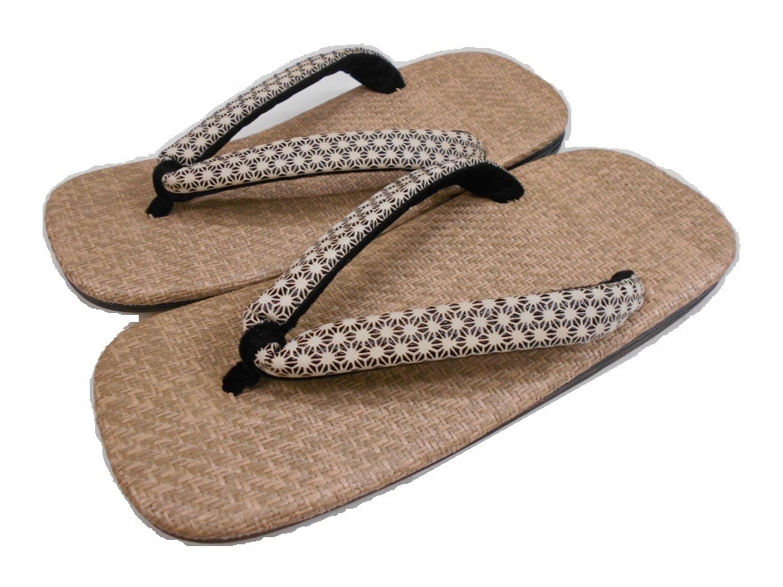 雪下草 雪駄 パナマ 天然素材 Lサイズ 印伝風漆の鼻緒 白系色 オリジナル