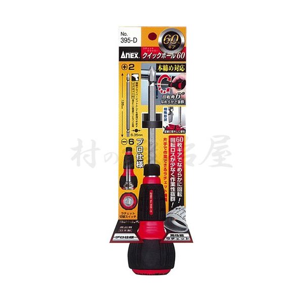 ANEX 高性能ラチェットドライバー クイックボール 60 +2×-6×135mmビット No.395-D