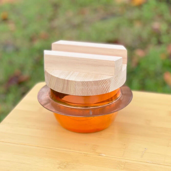 ここがポイント!1枚の銅板を継ぎ目無しに伸ばして成形した銅の羽釜。0.5〜1合の炊飯が出来ます。木蓋付きで内面はフッ素樹脂コーティング。