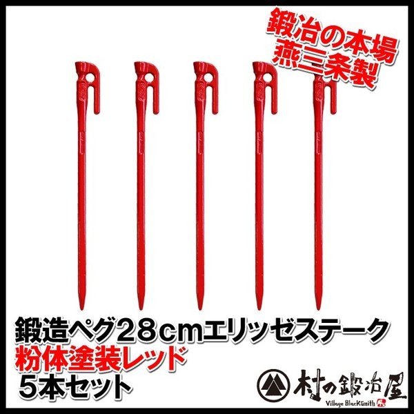 鍛造ペグ エリッゼステーク 28cm レッド5本セット 粉体塗装+カチオン電着塗装