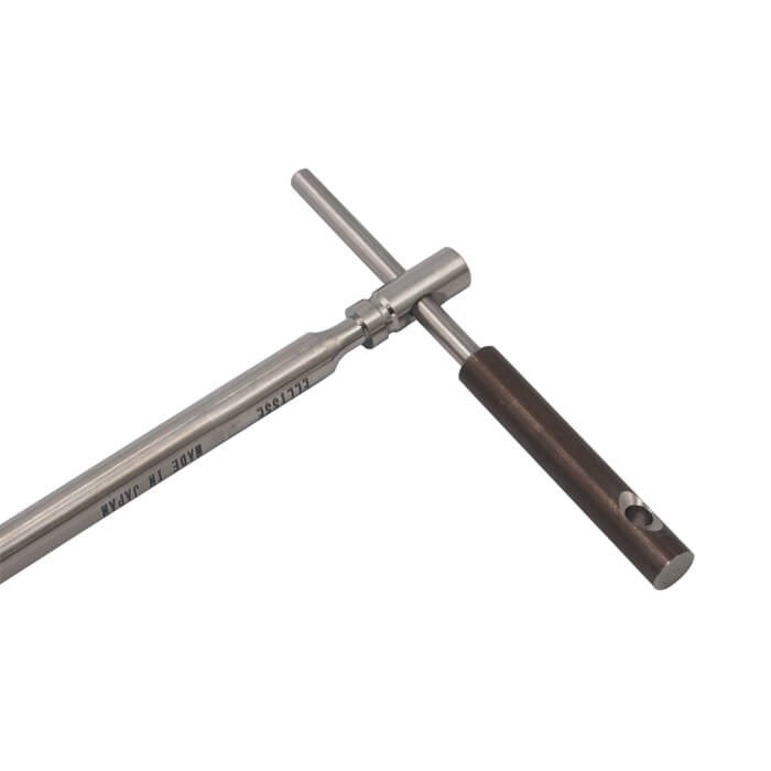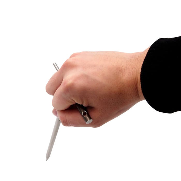 エリッゼステーク64チタンペグの穴に刺し入れ、回転させることで簡易的に引き抜くことができる専用工具。