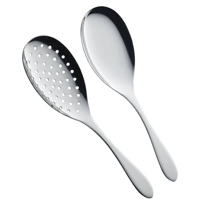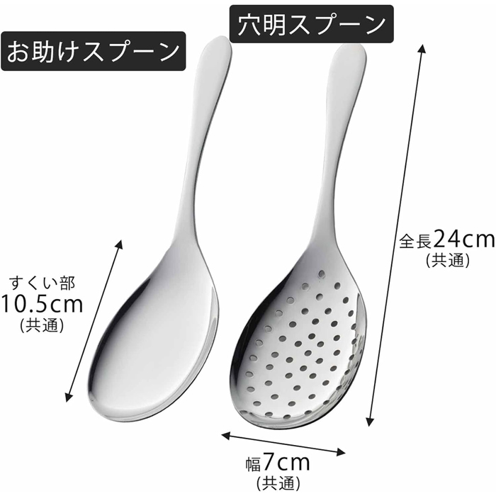 皿部が大きく使いやすいスプーンと穴明スプーンのセットです。